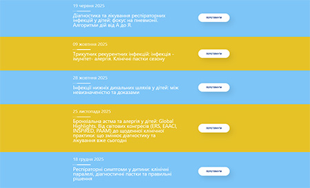 З вірою в нашу близьку Перемогу та завдячуючи ЗСУ, ГО «Асоціація дитячих пульмонологів України» та ГО «Асоціація дитячих алергологів України» запланували проведення в другій половині 2025 року серію онлайн заходів «Фахова школа з дитячої пульмонології та алергології: сучасні питання та майстер класи» за наступними темами: